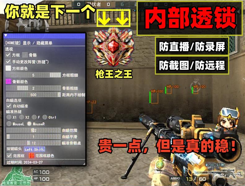 | 内透方框+范围追踪- [小兔]支持系统:【过网吧玄武/全系统】 功能列表:方框透视+显示血量 安全指数:98% [新手推荐用] 独家定制:【24小时在线监控稳定】 商品价格:36元/天,300元/周 |